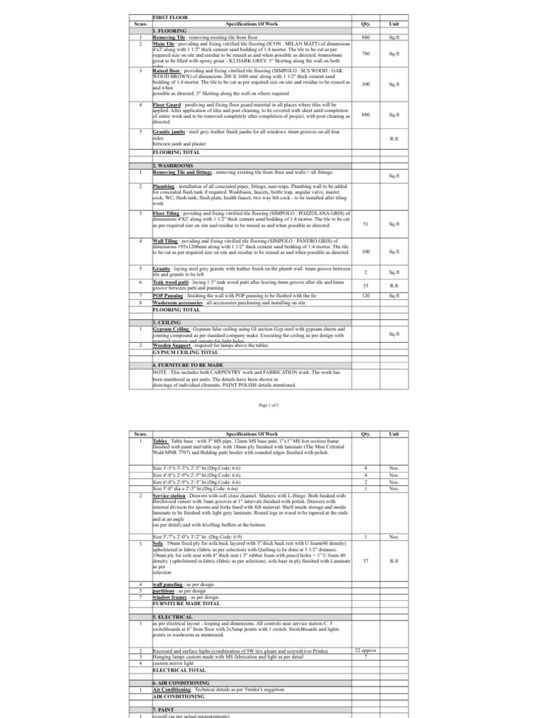 Sr.no. Specifications Of Work Qty. Unit
