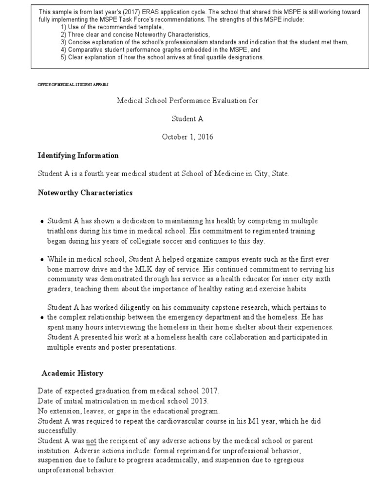 Student A is a fourth year medical student at School of Medicine in City, State.