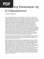 kaniyang nobela. Ang salitang “filibusterismo” ay hindi pa raw gaanong kilala sa Pilipinas noong