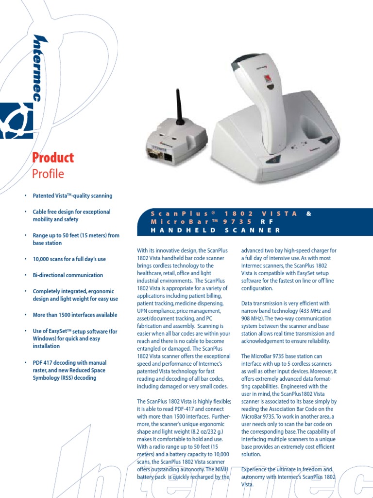 1802 Vista scanner offers the exceptional The MicroBar 9735 base station can