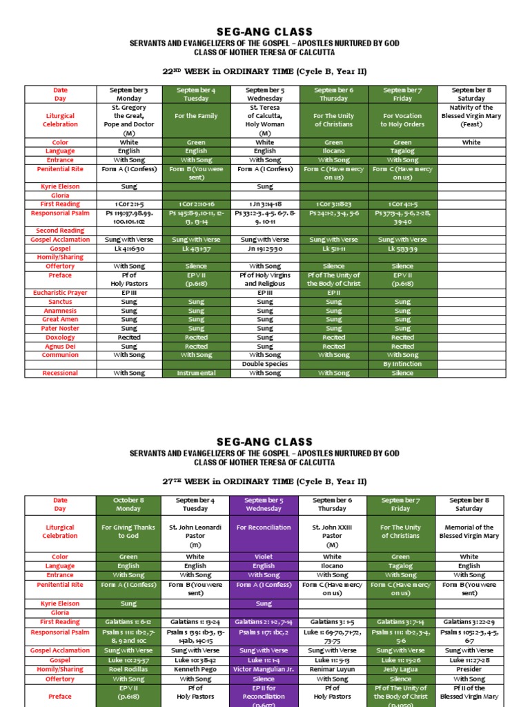Homily/Sharing Roel Rodillas Kenneth Pego Victor Mangulian Jr. Renimar Luyun Jesly Lagua Presider
