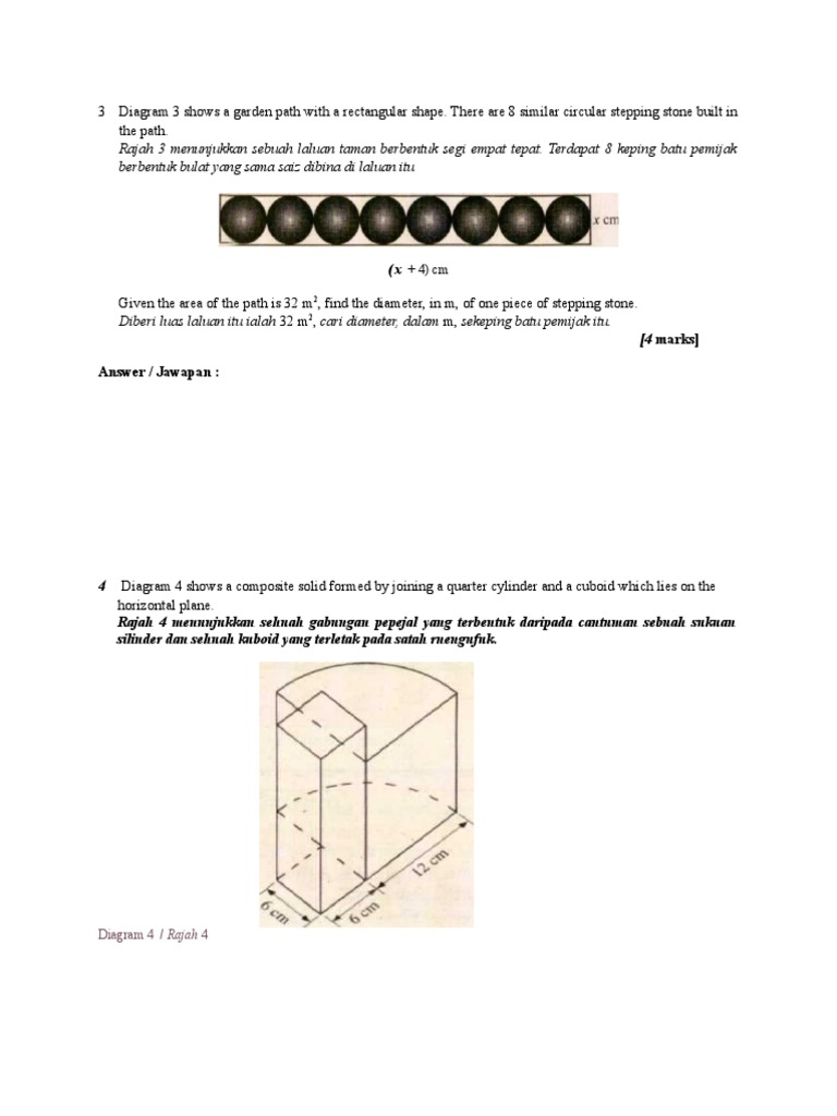 Rajah 3 menunjukkan sebuah laluan taman berbentuk segi empat tepat. Terdapat 8 keping batu pemijak
