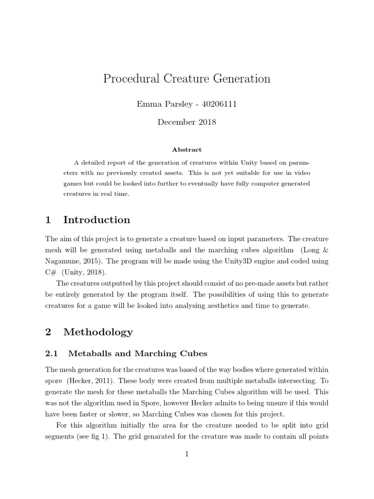 creatures for a game will be looked into analysing aesthetics and time to generate.