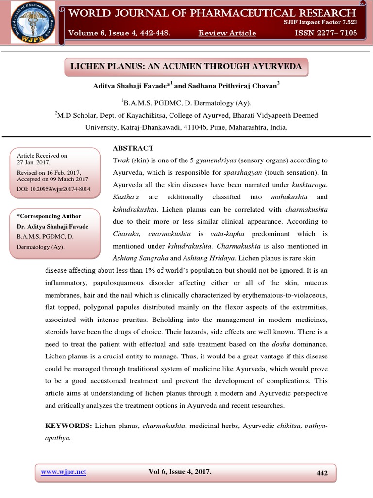 article aims at understanding of lichen planus through a modern and Ayurvedic perspective