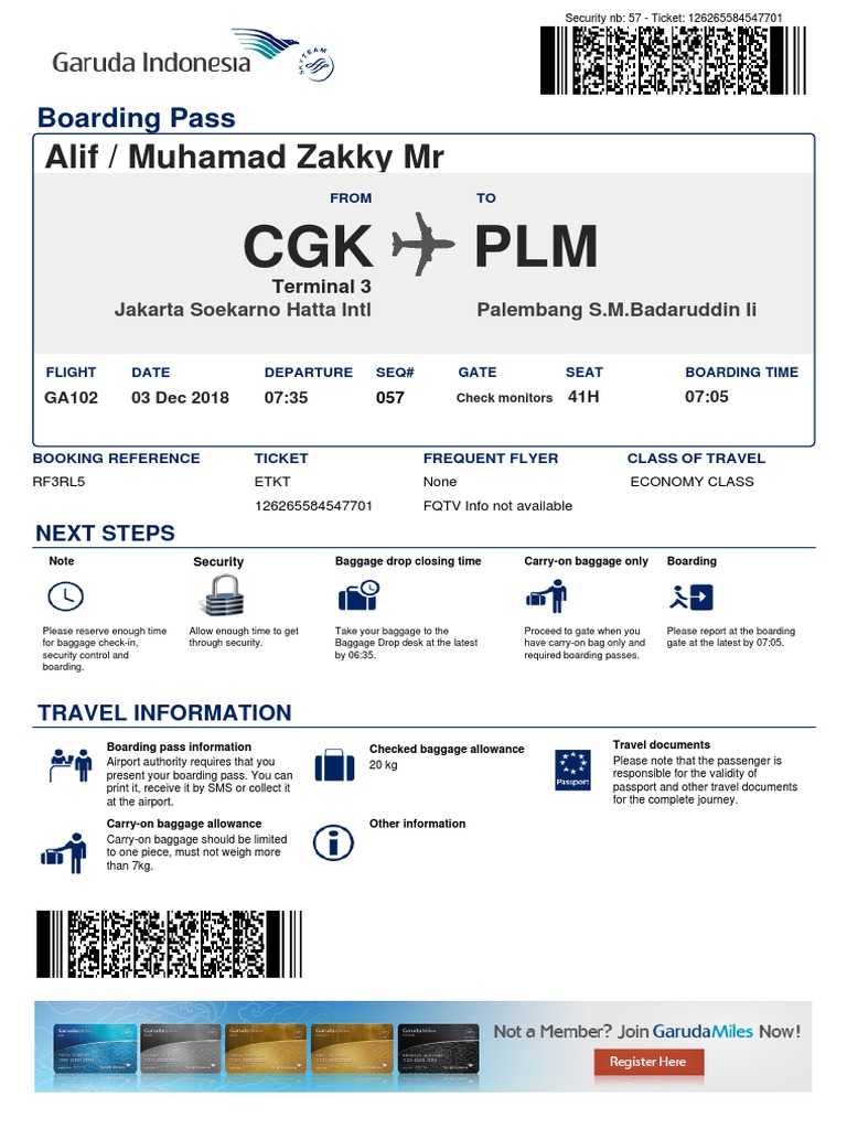 BOOKING REFERENCE TICKET FREQUENT FLYER CLASS OF TRAVEL