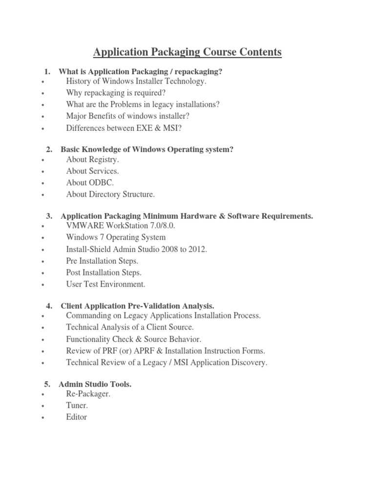 Application Packaging Course Contents