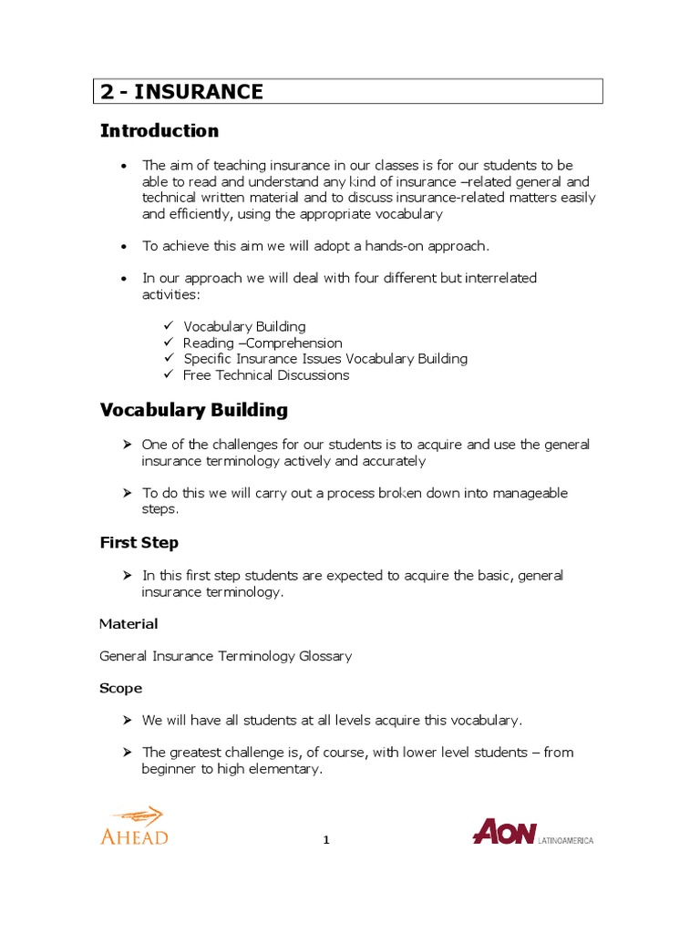 1. Revise the Beginner and High-Beginner levels insurance terminology