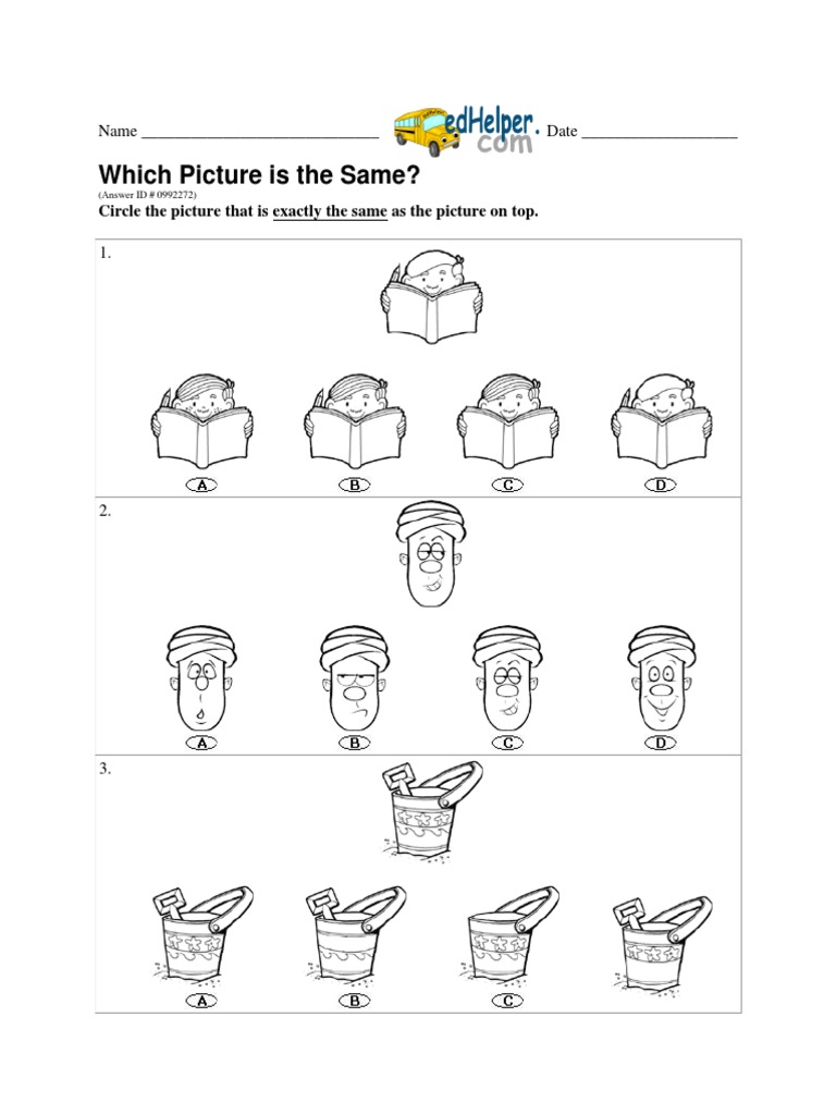 Circle the picture that is exactly the same as the picture on top.