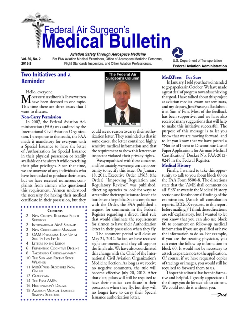 Vol. 50, No. 2 For FAA Aviation Medical Examiners, Office of Aerospace Medicine Personnel, U.S. Department of Transportation