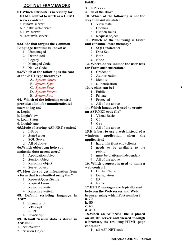 3. a mix of ASP.NET and HTML 3. Convert.ToString() only handle