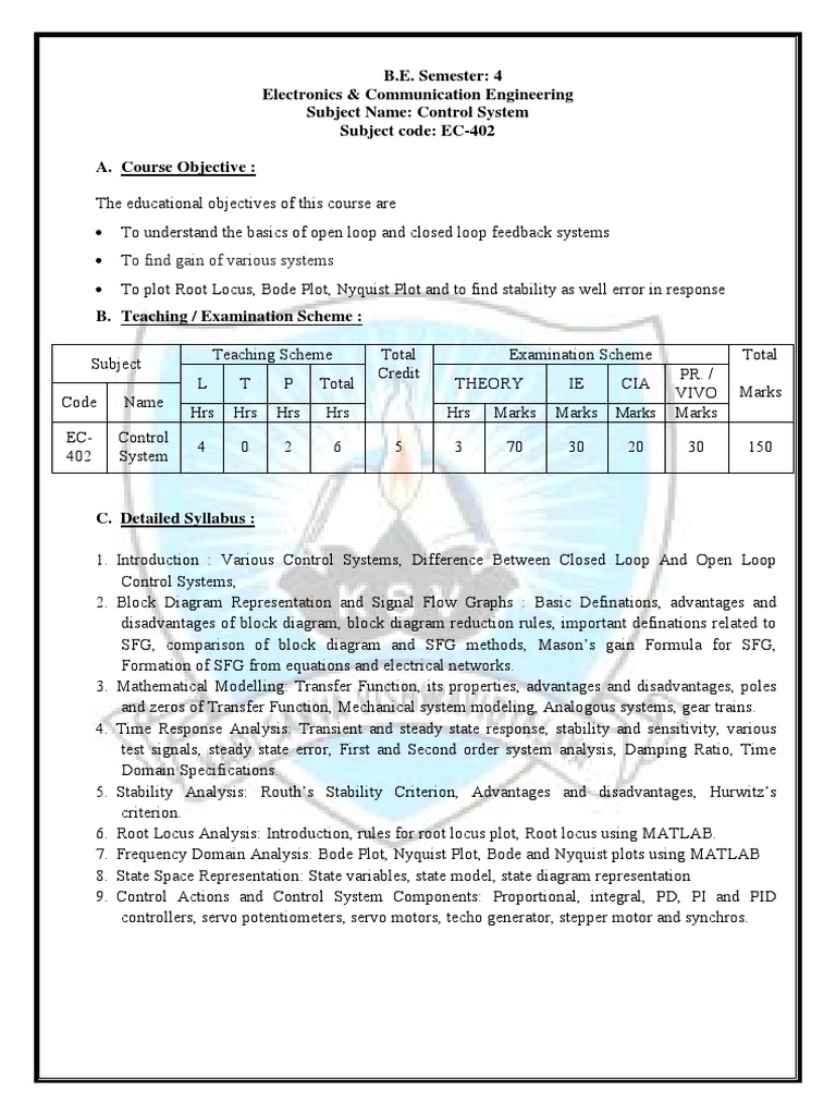 Subject Name: Control System