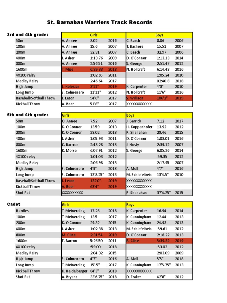 Barnabas Warriors Track Records