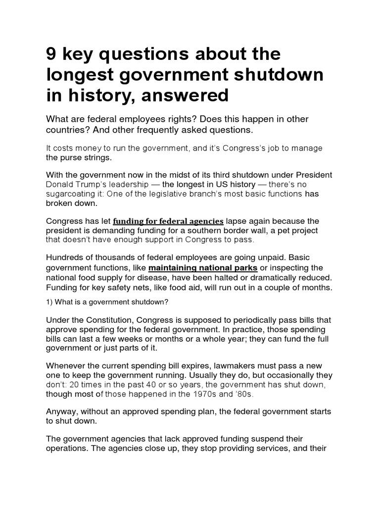 On December 21, 2018, Congress let funding for roughly 25 percent of the