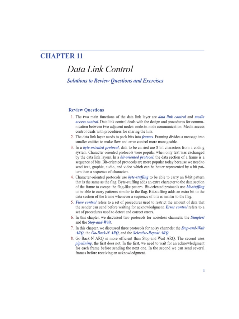 7. In this chapter, we discussed three protocols for noisy channels: the Stop-and-Wait