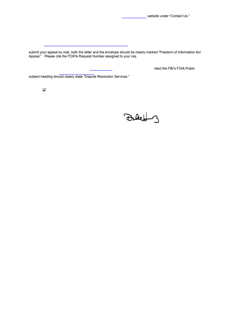 Appeal.” Please cite the FOIPA Request Number assigned to your request so it may be easily identified.