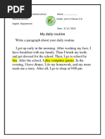 Everyday I wake up with my alarm clock at seven o’clock. I get dressed, wash