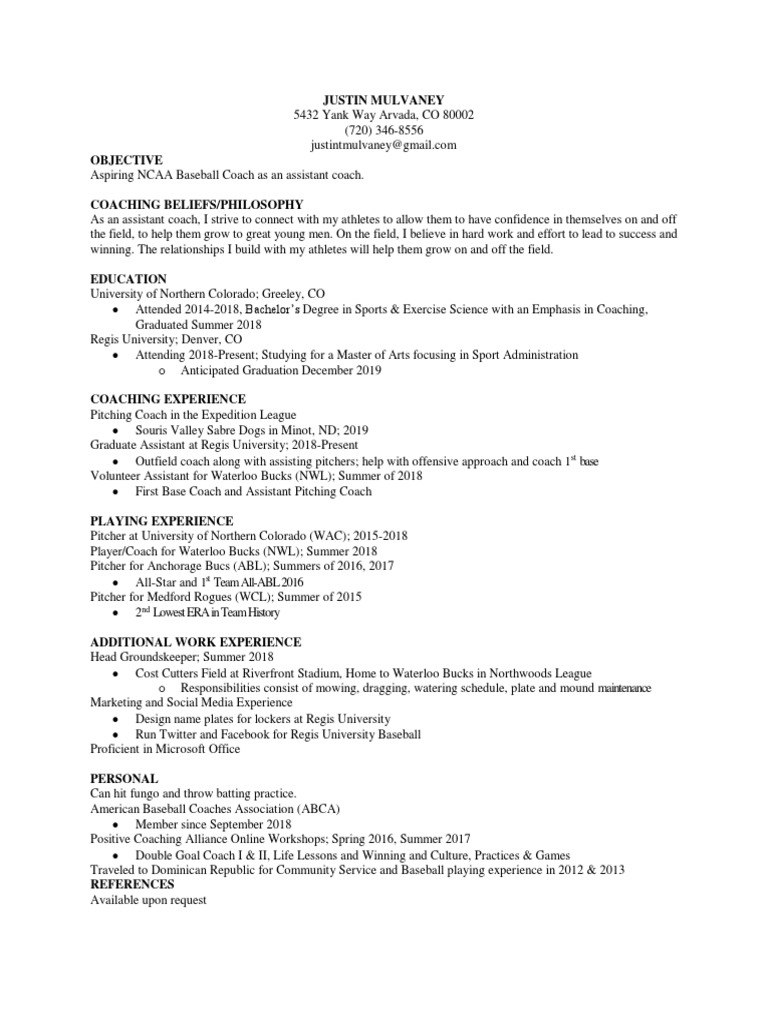 • Attended 2014-2018, Bachelor’s Degree in Sports & Exercise Science with an Emphasis in Coaching,