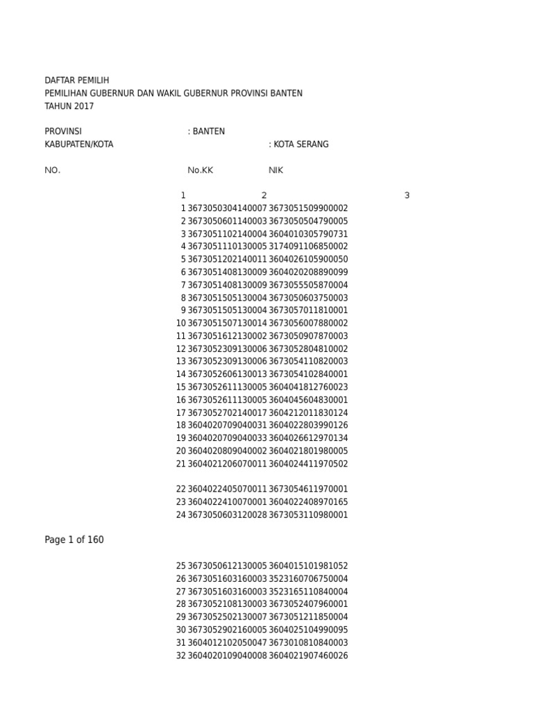 KABUPATEN/KOTA : KOTA SERANG