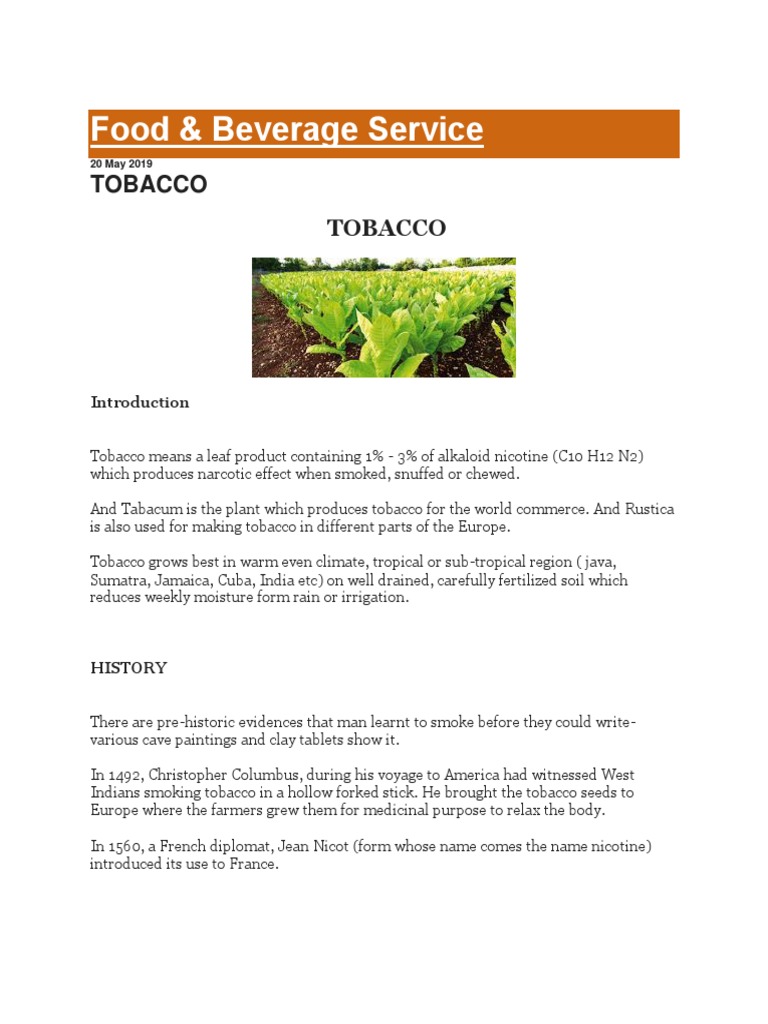 Tobacco means a leaf product containing 1% - 3% of alkaloid nicotine (C10 H12 N2)
