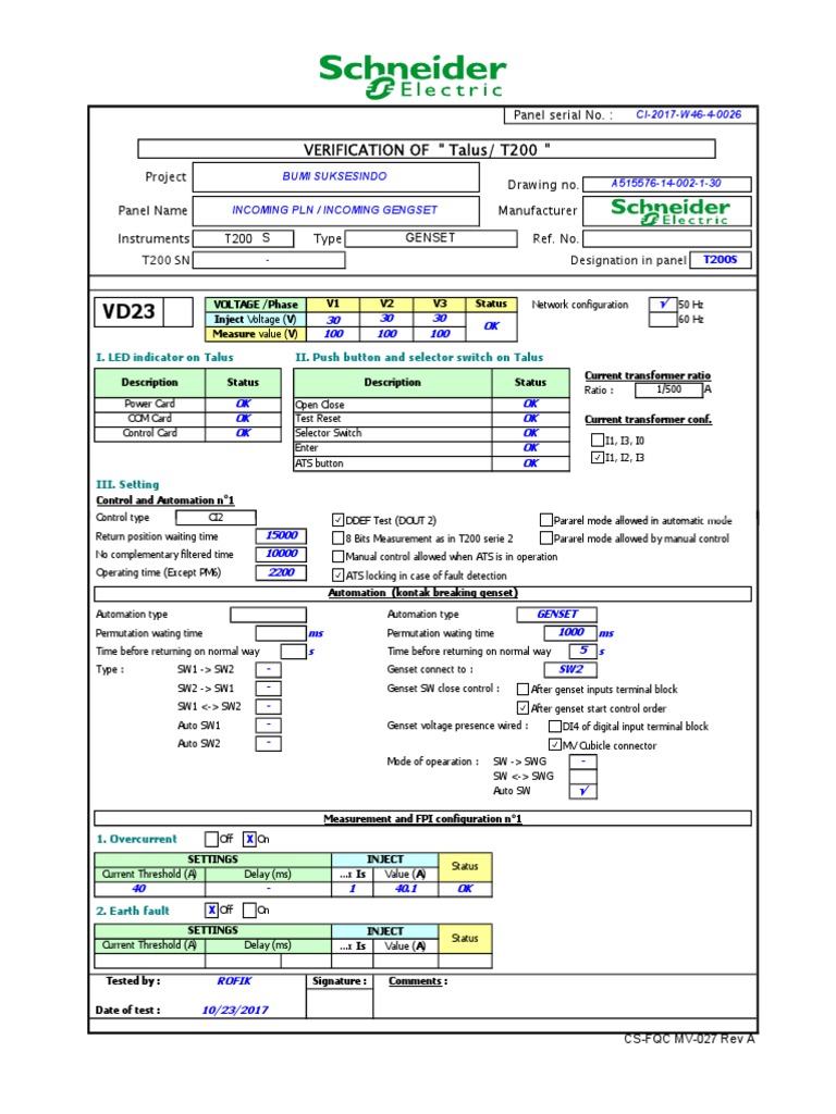 Panel Name INCOMING PLN / INCOMING GENGSET Manufacturer