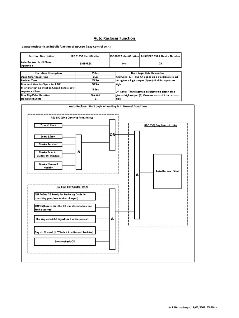 Auto Recloser Start Logic when Bay is in Normal Condition