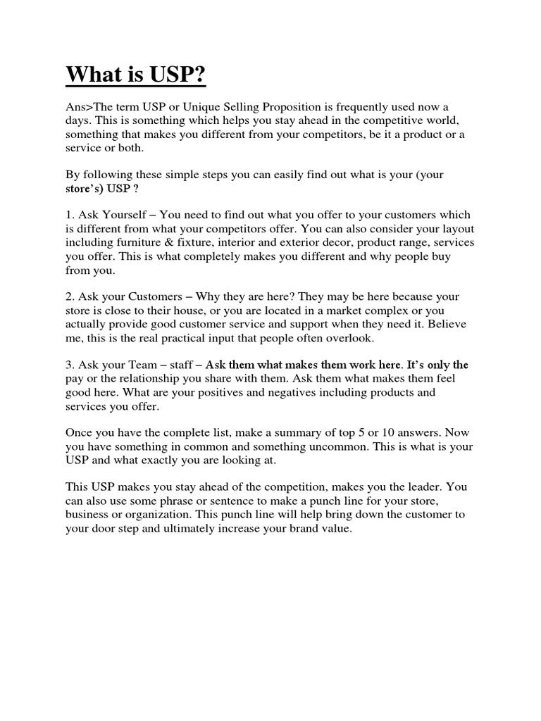 Ans>The term USP or Unique Selling Proposition is frequently used now a