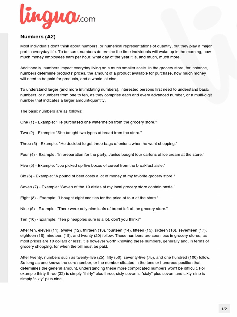 Source: https://lingua.com/english/reading/numbers/ - Solution: 1) c 2) d 3) b 4) c 5) d 2/2