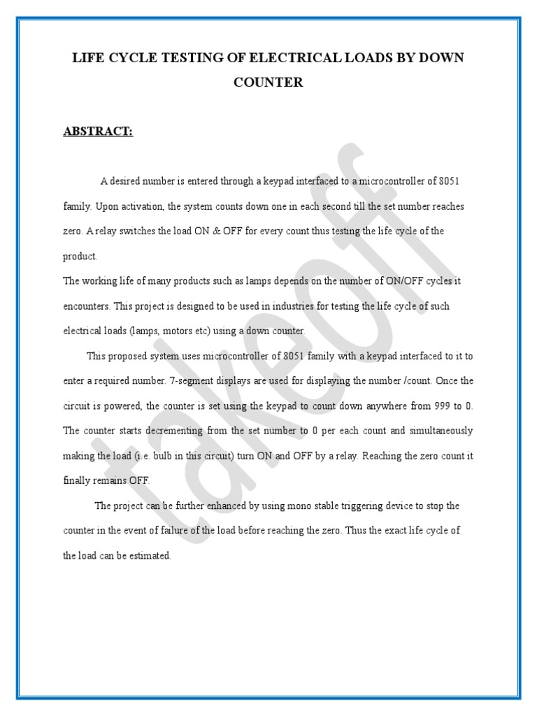 zero. A relay switches the load ON & OFF for every count thus testing the life cycle of the