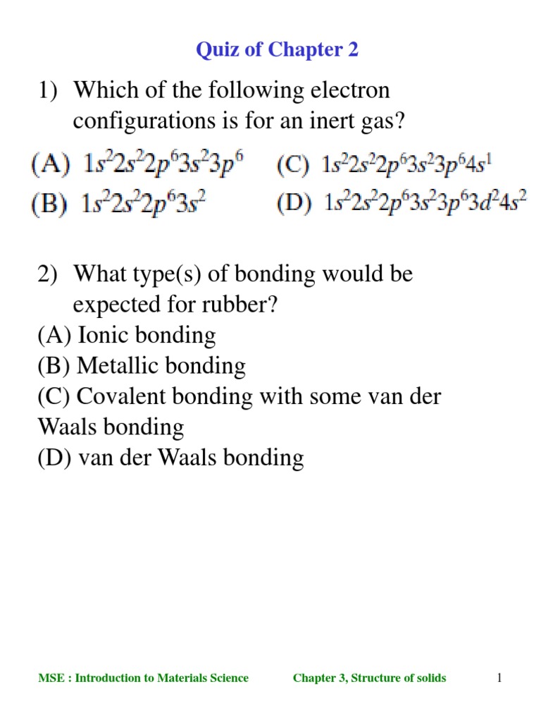 MSE : Introduction to Materials Science Chapter 3, Structure of solids 1