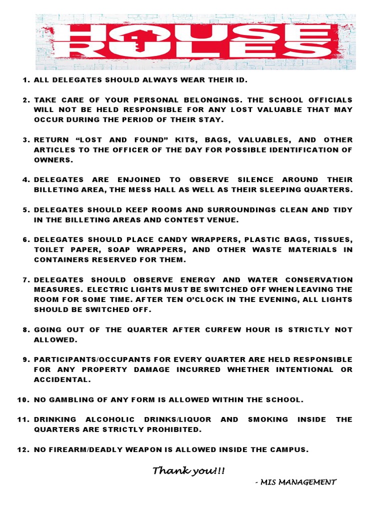 5. DELEGATES SHOULD KEEP ROOMS AND SURROUNDINGS CLEAN AND TIDY
