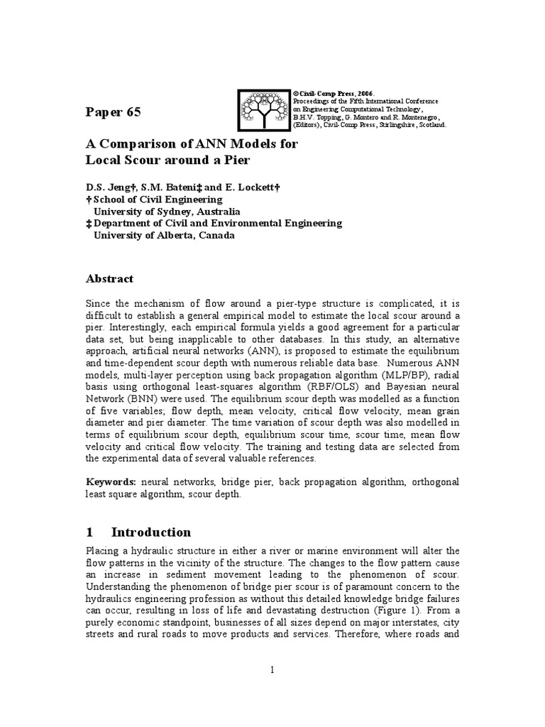 [7] D.-S. Jeng, S. M. Bateni, E. Lockett, “Neural Network assessment for scour