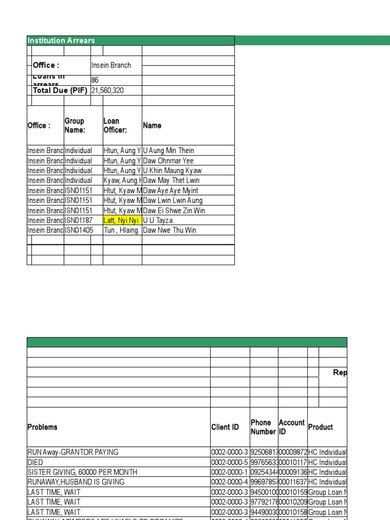 Insein Branch Loan Arrears Report