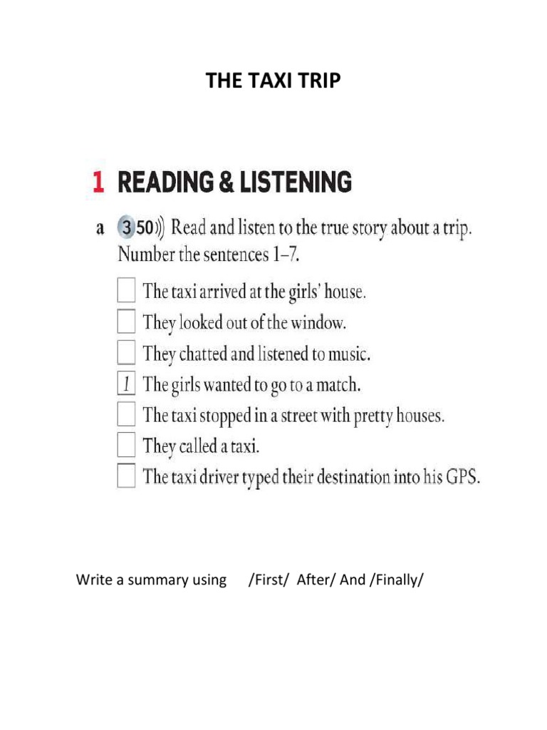 The Taxi Trip: Write A Summary Using /first/ After/ and /finally