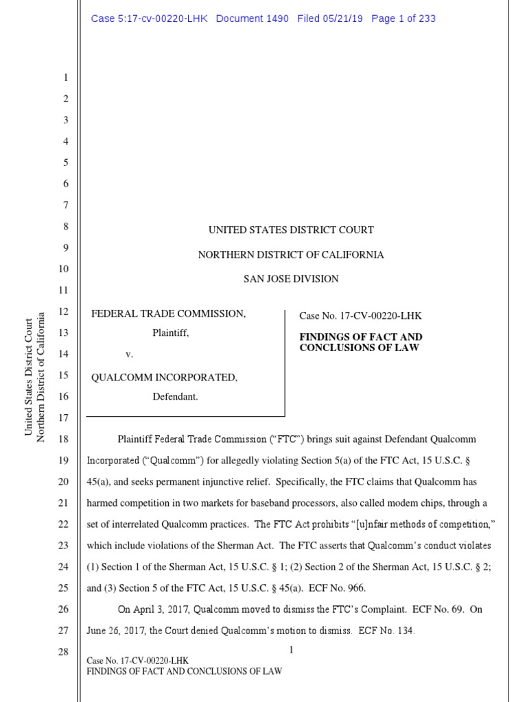 FTC v. Qualcomm Findings of Fact and Conclusions of Law
