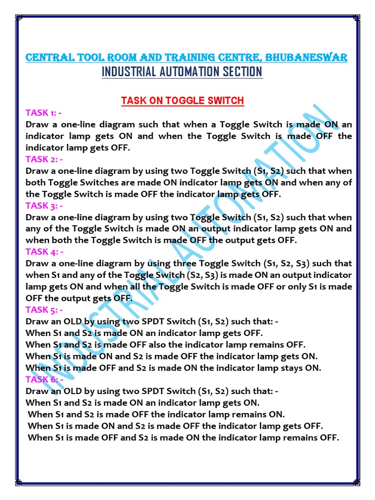Draw a one-line diagram such that when a Toggle Switch is made ON an
