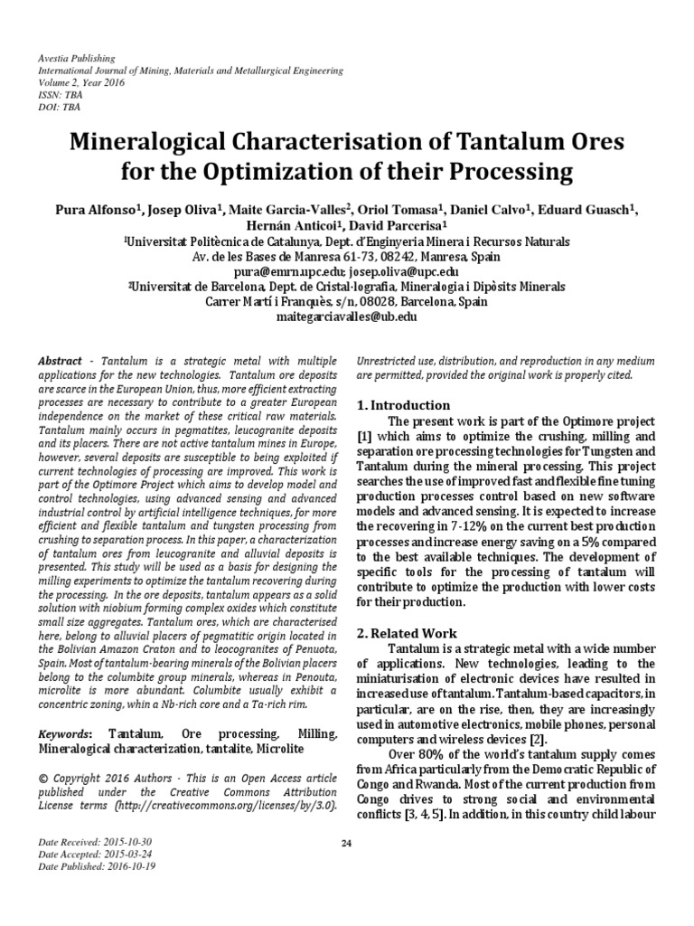 applications for the new technologies. Tantalum ore deposits are permitted, provided the original work is properly cited.