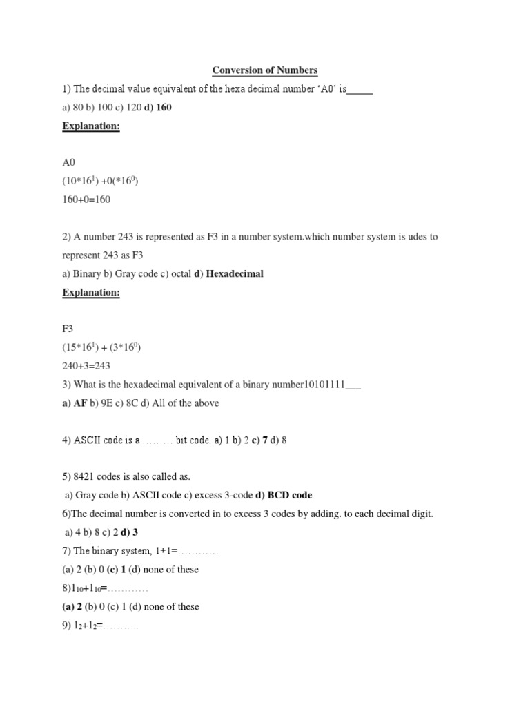 1) The decimal value equivalent of the hexa decimal number ‘A0’ is_____