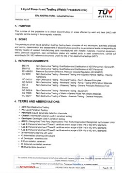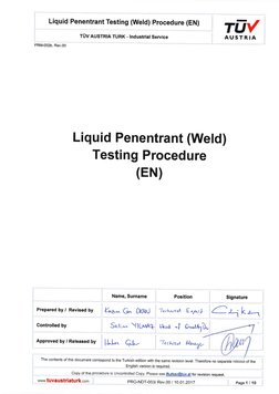www.tuvaustriaturk.com PRO-NDT-003) Rev.00 / 10.01.2017 Page 1/10Liquid Penentrant Testing (Weld) Procedure (EN) TUV