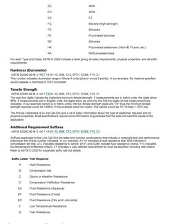 ‘compression set test. C12 indicates resistance to ozone. EF31 and E086 indicate fluid resistance cnteria. F15 indicates