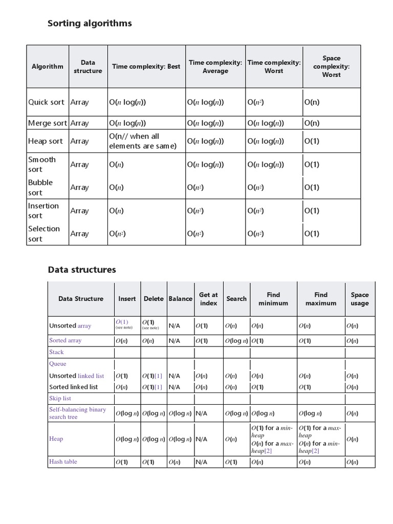 Sorted linked list O(n) O(1)[1] N/A O(n) O(n) O(1) O(1) O(n)