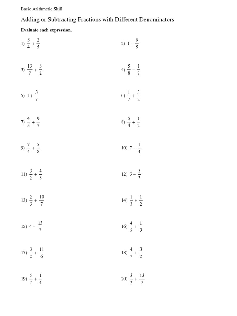 Answers to Adding or Subtracting Fractions with Different Denominators
