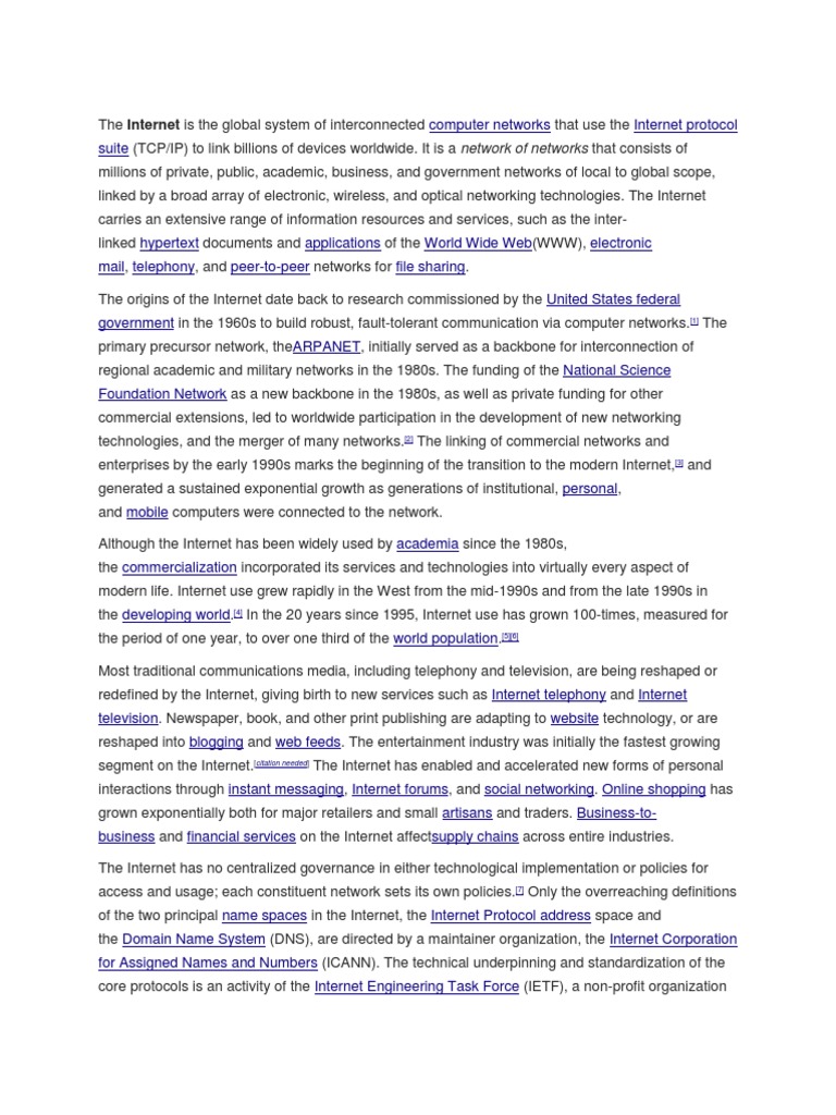 linked by a broad array of electronic, wireless, and optical networking technologies. The Internet