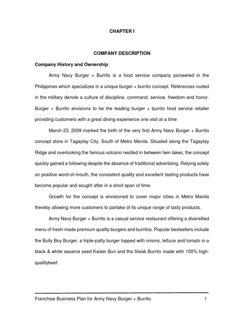 Franchise Business Plan for Army Navy Burger + Burrito 1