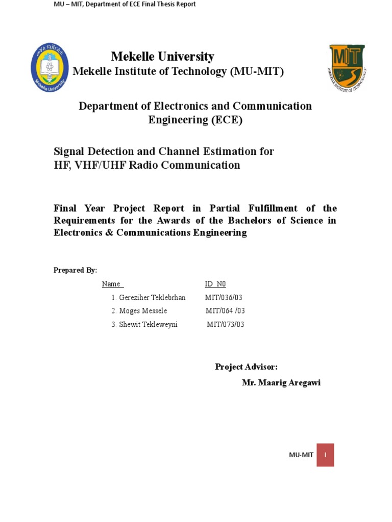 MU – MIT, Department of ECE Final Thesis Report