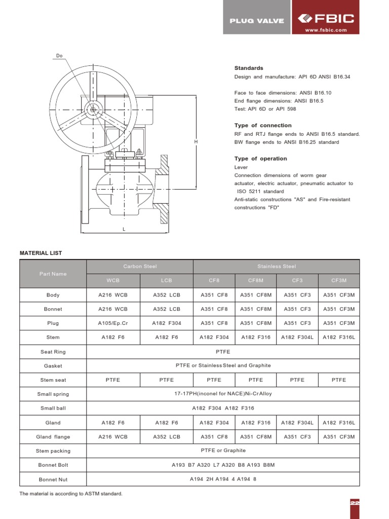 Design and manufacture: API 6D ANSI B16.34