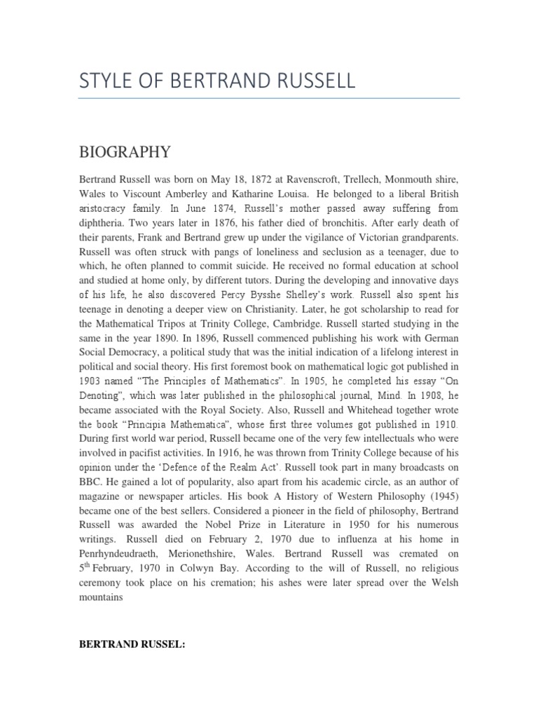 STYLE OF BERTRAND RUSSELL