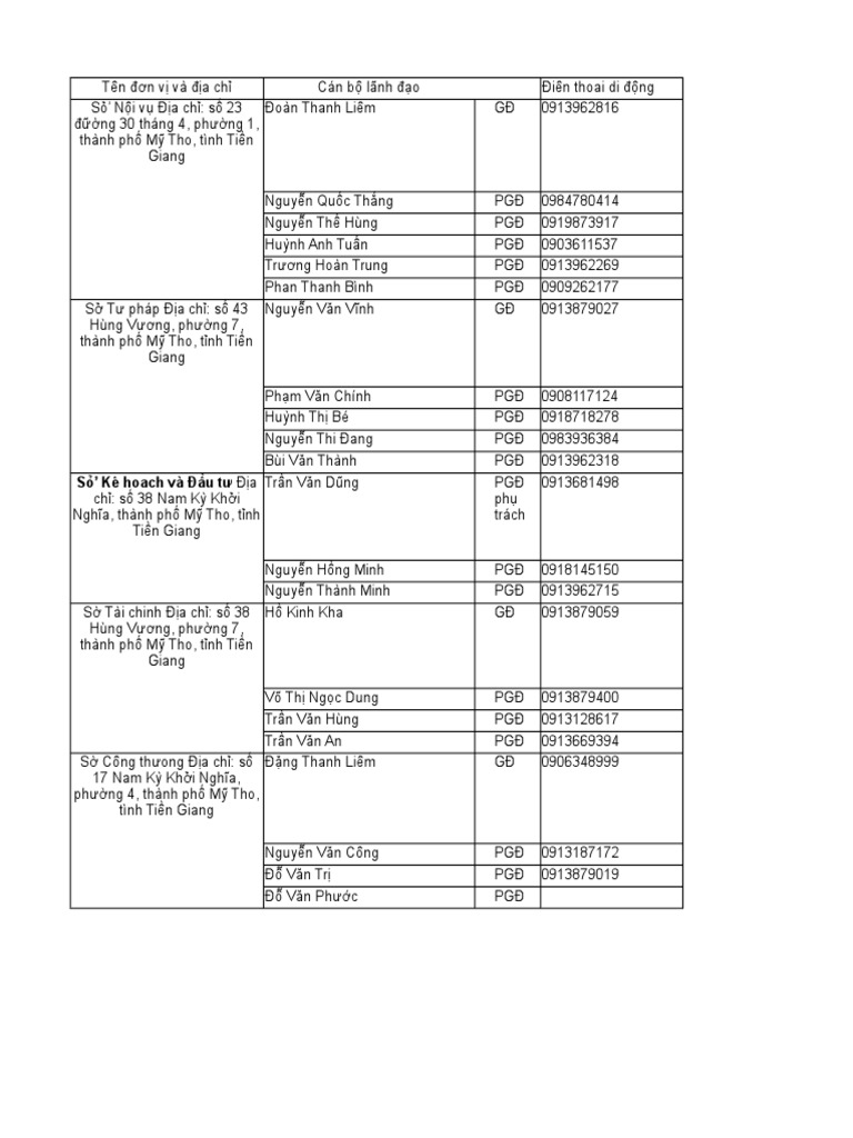 Tên đơn vị và địa chỉ Cán bộ lãnh đạo Điên thoai di động