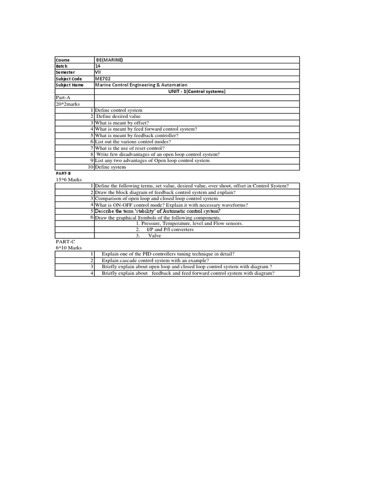 Subject Name Marine Control Engineering & Automation
