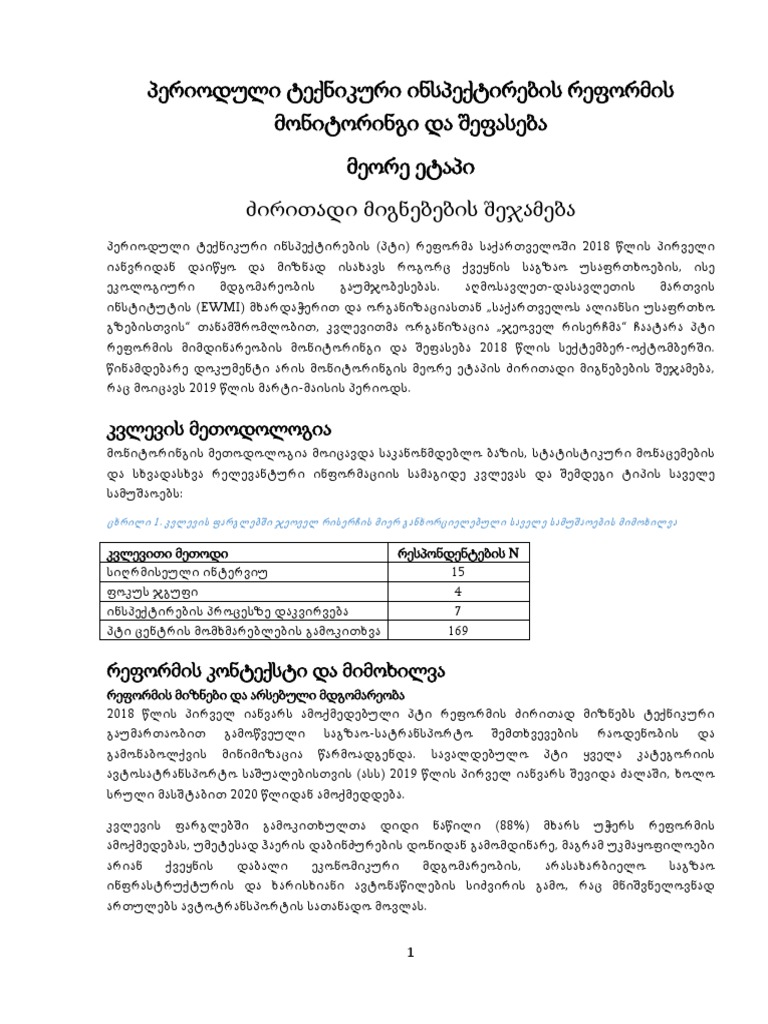 პერიოდული ტექნიკური ინსპექტირების რეფორმის მონიტორინგი და შეფასება