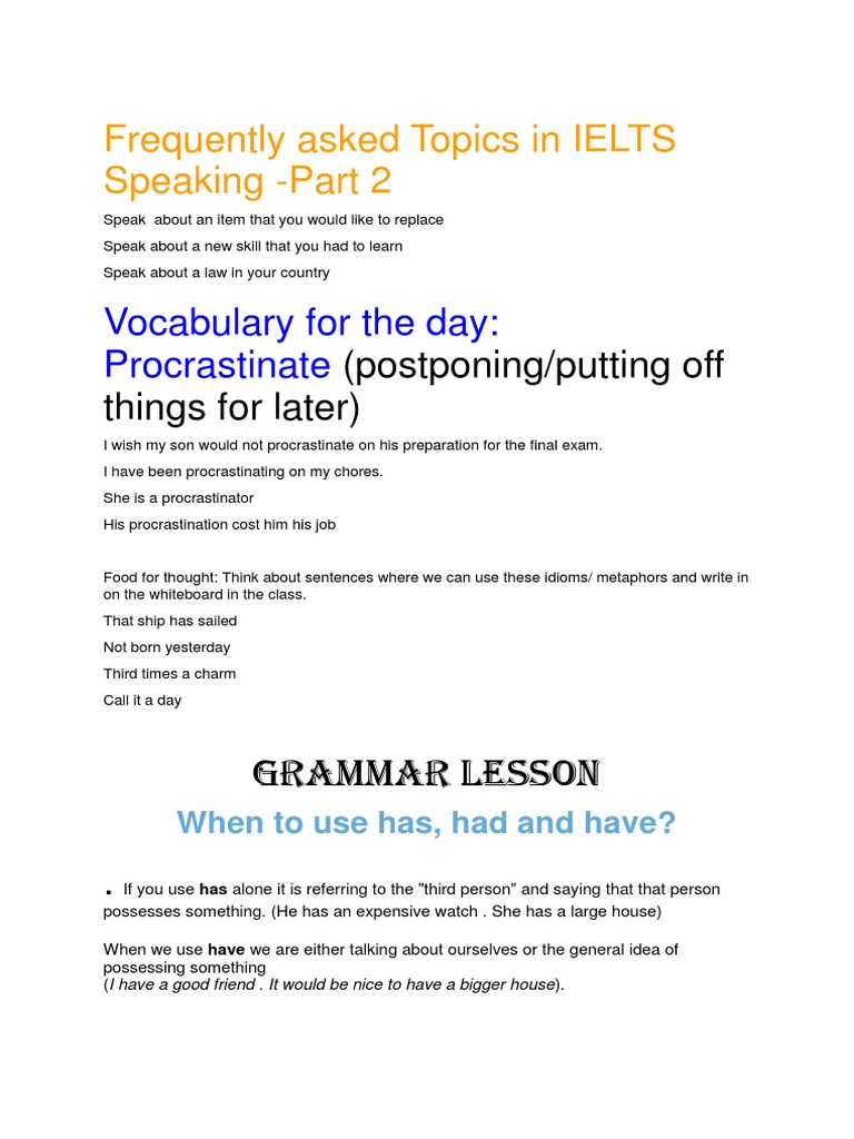 Frequently asked Topics in IELTS